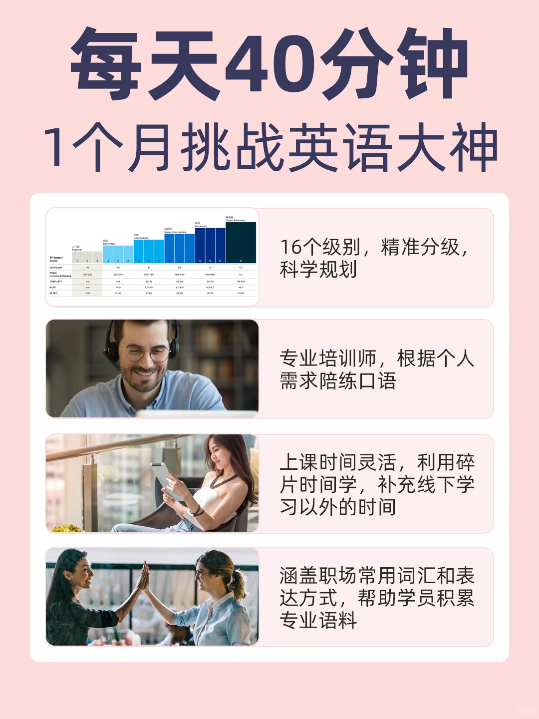 ✅报班:科学分级课程,从基础发音到高阶商务英语,循序渐进,稳步提升
