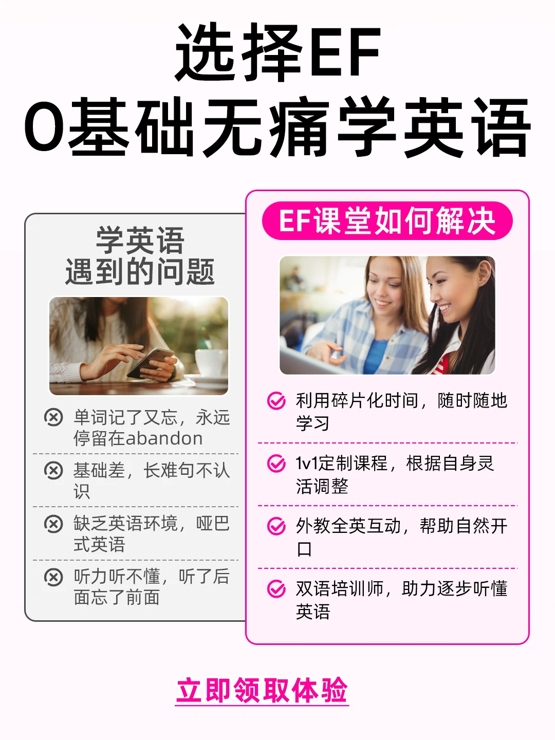 👇 现在点击下方【立即领取】按钮👇或【私信 @EF成人英语课程咨询 - 小E 】体验沉浸式课程